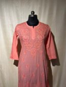 Features intricate chikankari embroidery on the front and sleeves, showcasing traditional craftsmanship.